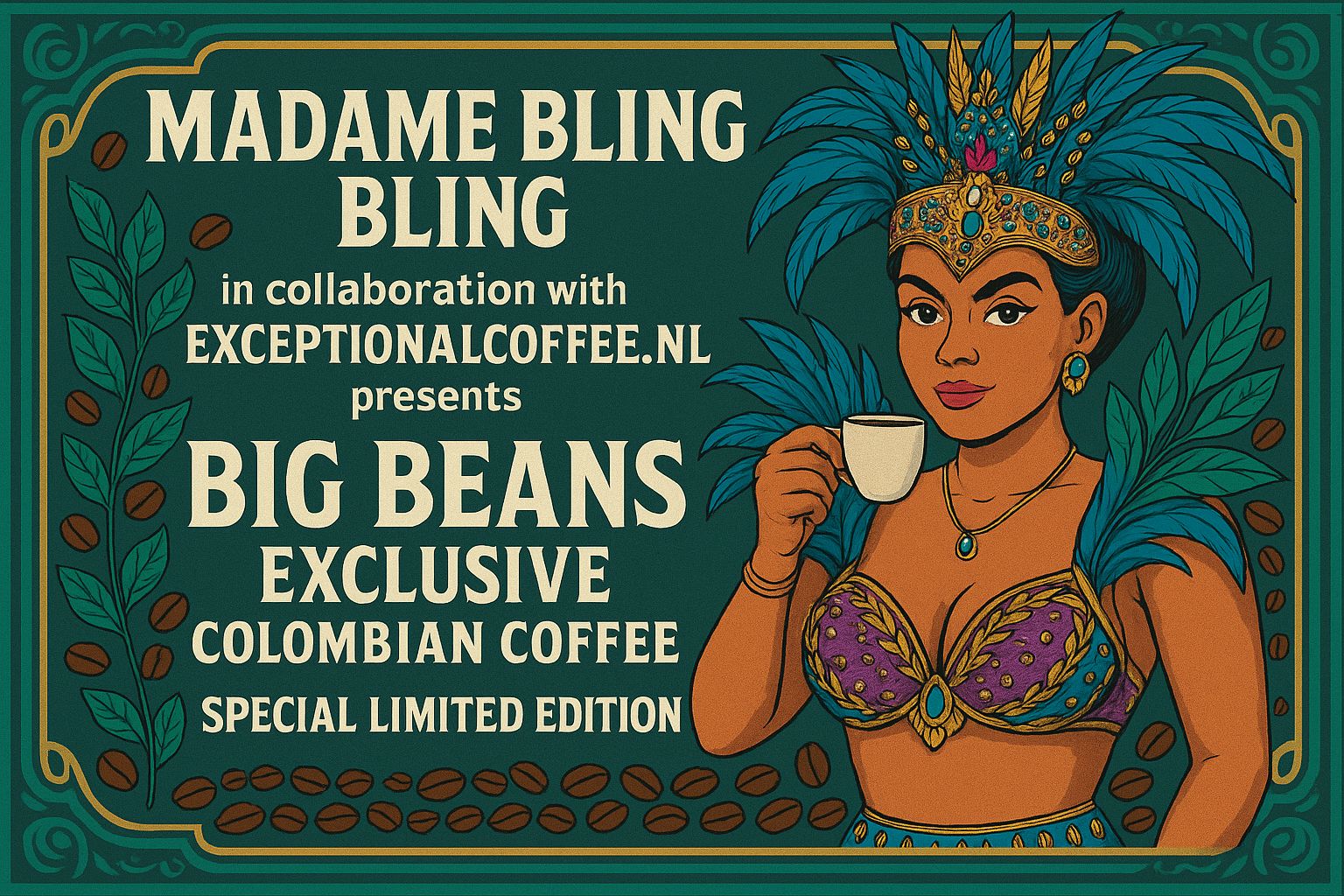 Experience the ultimate Colombian coffee sensation in this exclusive collaboration between the legendary Madame Bling Bling and the artisanal roasters at ExceptionalCoffee.NL.